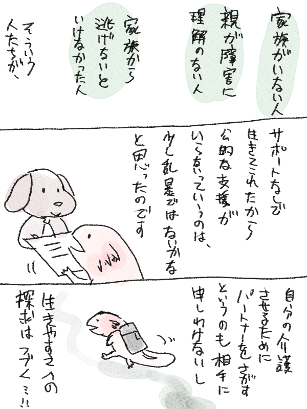 「できる」「できない」の間の話は、発達障害のひとに限った話ではない(と思う)のですがね。時代はかわってきているので、公的支援の色々が「すべての支援が必要な人間に、当然家族が助けてくれる環境がある」という前提をとっぱらってくれるようになると、よいですね。共有:Facebook で共有するにはクリックしてください (新しいウィンドウで開きます)Facebookクリックして X で共有 (新しいウィンドウで開きます)Xクリックして Threads で共有 (新しいウィンドウで開きます)Threadsクリックして Bluesky で共有 (新しいウィンドウで開きます)Blueskyクリックして Mastodon で共有 (新しいウィンドウで開きます)Mastodonクリックして友達にメールでリンクを送信 (新しいウィンドウで開きます)メールアドレス